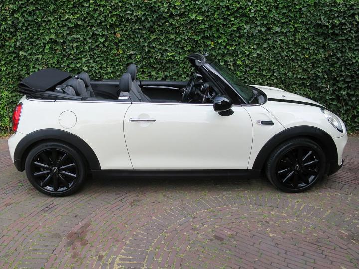 Zeer nette, goed onderhouden Mini Cabrio Cooper F57 in de kleur Pepper White met een zwarte stoffen kap, zwarte 17" Cosmos Spoke lichtmetalen velgen en een half leder Carbon Black sportinterieur met een Carbon Black colourline en Piano Black interieurdelen! Deze Cooper Cabrio heeft slechts 1 eigenaar gehad die er slechts 59.399km mee heeft gereden. De Cabrio is o.a. uitgerust met een origineel windscherm, Park Distance Control (PDC) achter, LED kop- en mistlampen, climate control, lederen multifunctioneel sportstuur met cruise control, stoelverwarming, lichtpakket en opbergpakket.