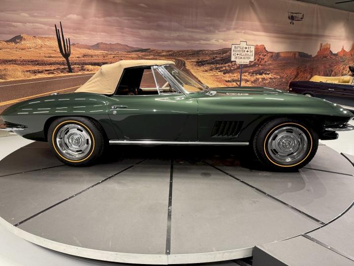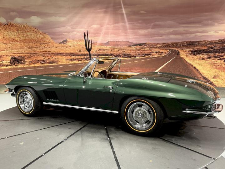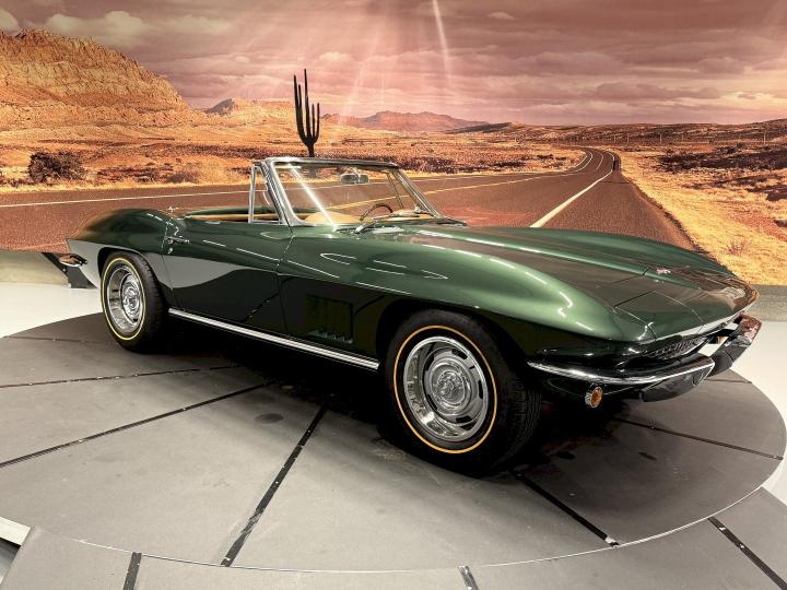 Just new in stock 1967 Corvette Sting Ray C2 Convertible in rare color combo Goodwood Green / Saddle