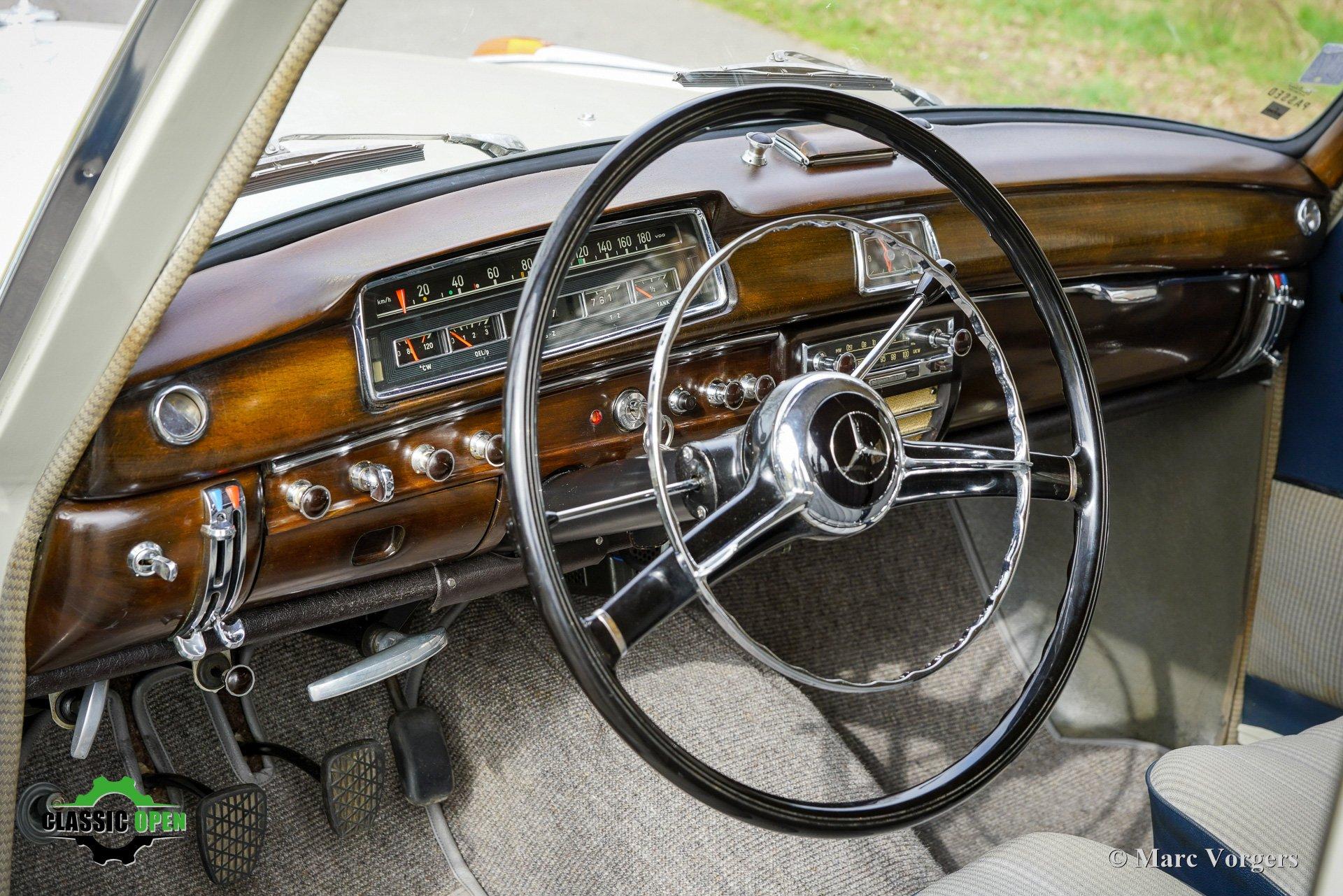 Het interieur is voorzien van prachtig houtwerk op het dashboard en rond de ramen, en de auto is uitgerust met de meest geavanceerde Becker-radio van die tijd: de Mexico, met zijn motorisch aangedreven zenderzoekfunctie (de radio werkt momenteel niet - niet getest - en is alleen ter decoratie aanwezig). Deze fraaie Mercedes-Benz presenteert zich als een uitstekend bewaard gebleven origineel exemplaar in zeer goede staat.